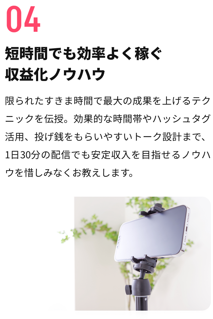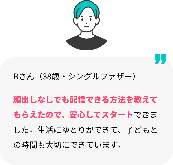 A.いいえ、必須ではありません。声や手元、趣味の紹介など、顔出しなしでも魅力的な配信方法をご提案します。