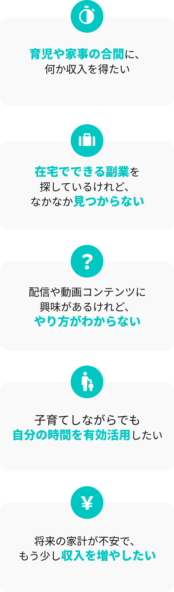 参加同じ目標を持つママパパクリエイター同士で情報交換や励まし合いができるコミュニティに参加できます